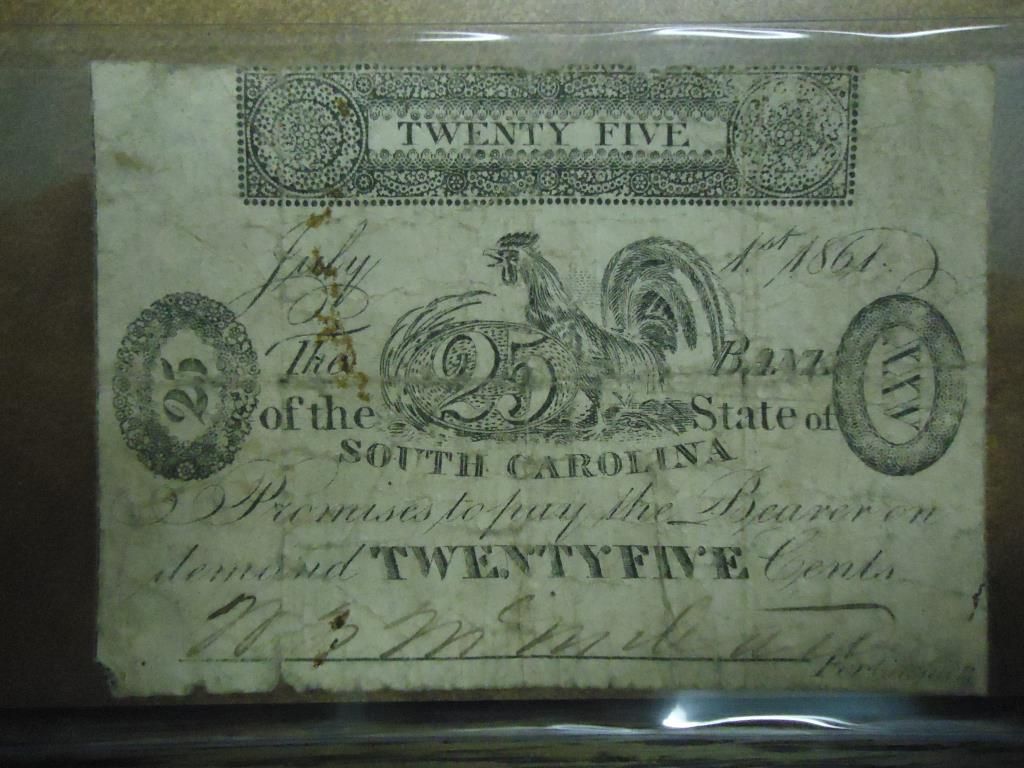 1861 SOUTH CAROLINA 25 CENT OBSOLETE BANK NOTE