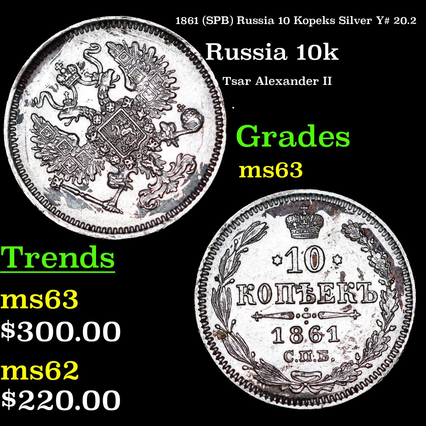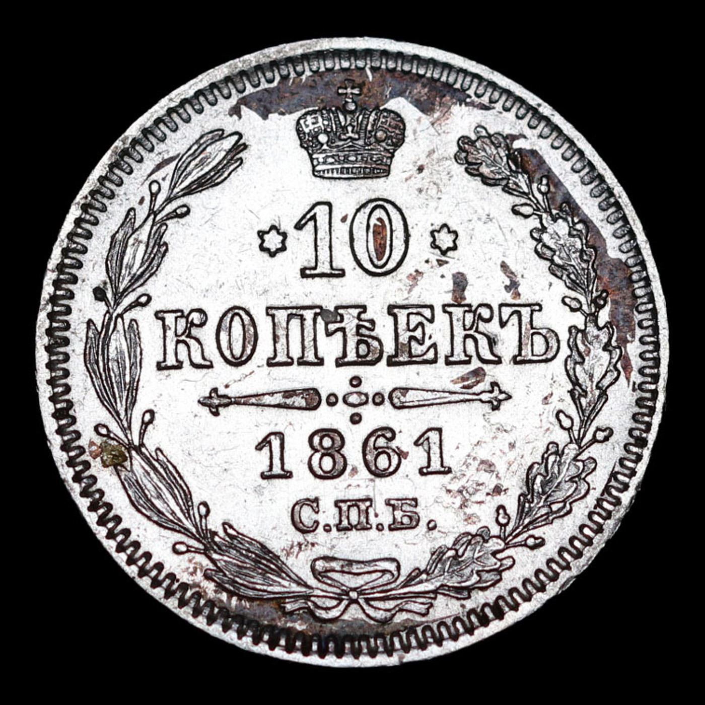 1861 (SPB) Russia 10 Kopeks Silver Y# 20.2 Grades Select Unc.