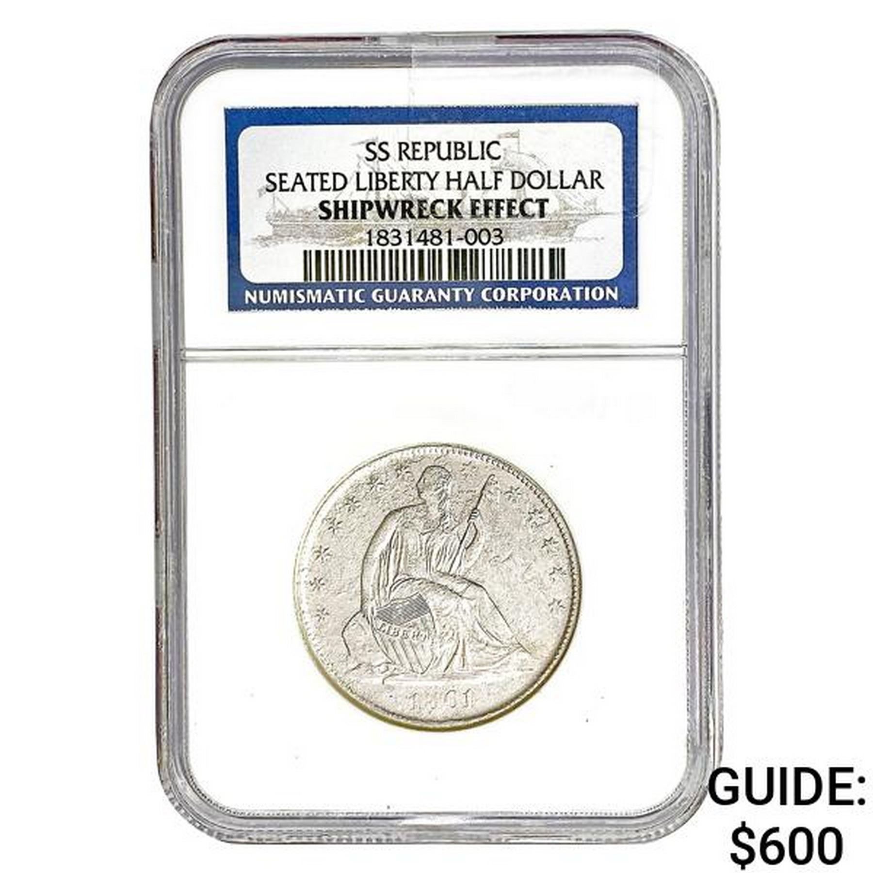 1861 Seated Lib. 50C NGC Confederate Shipwreck Effect SS Rep.