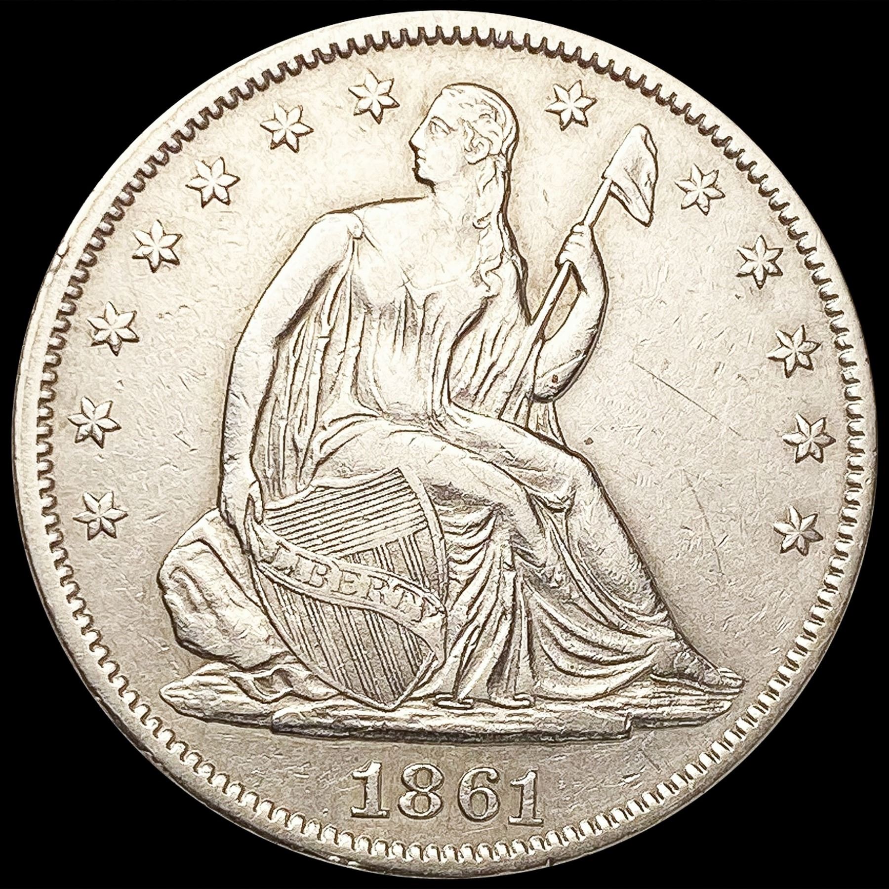 1861 Seated Liberty Half Dollar CLOSELY UNCIRCULAT