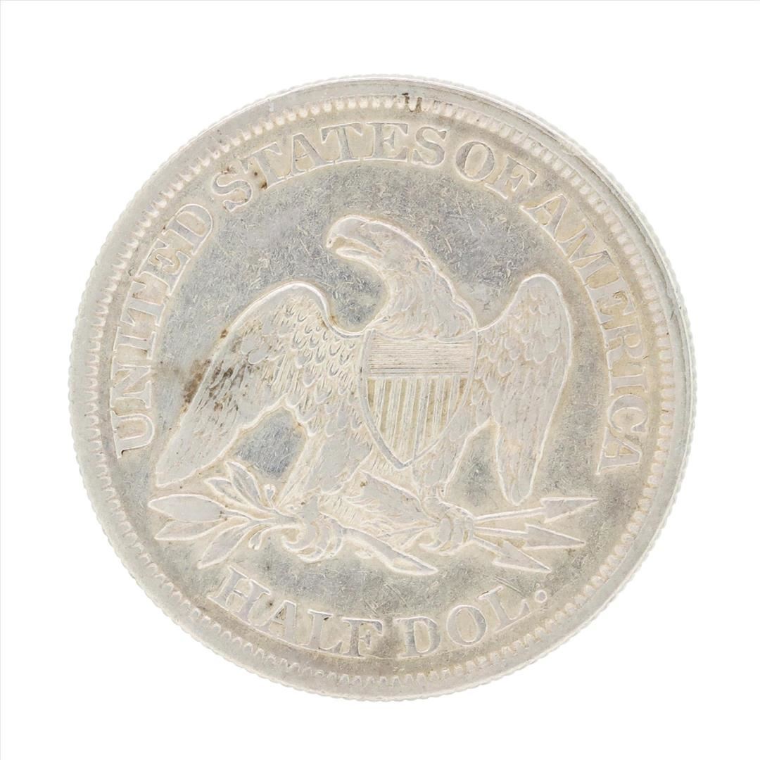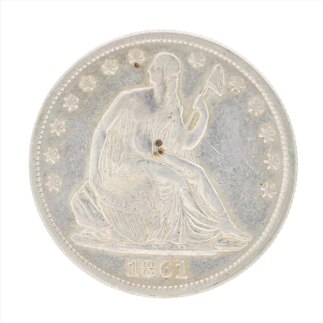 One 1861 Seated Liberty Half Dollar Coin.