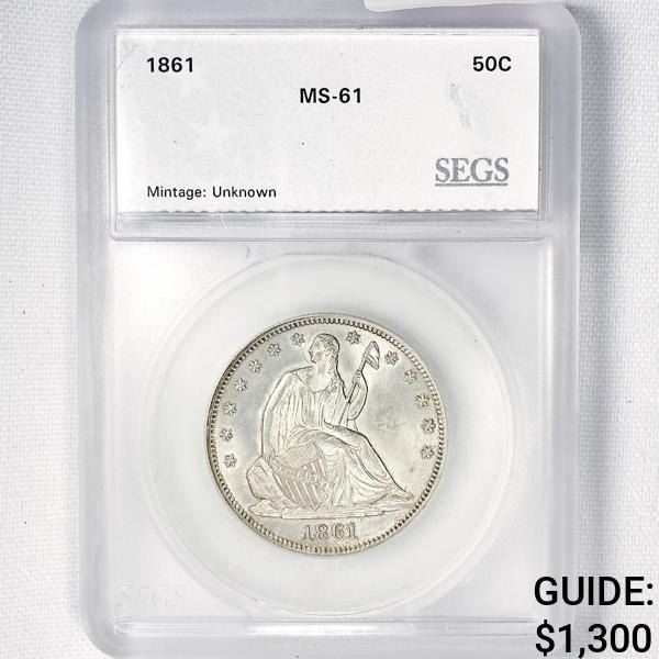1861 Seated Liberty Half Dollar SEGS-MS61