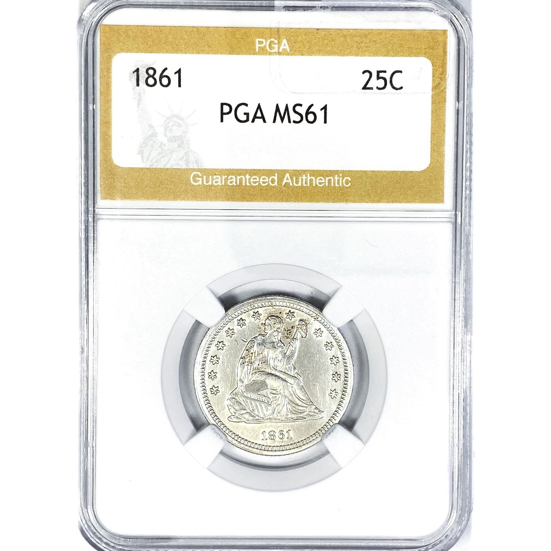 1861 Seated Liberty Quarter PGA MS61
