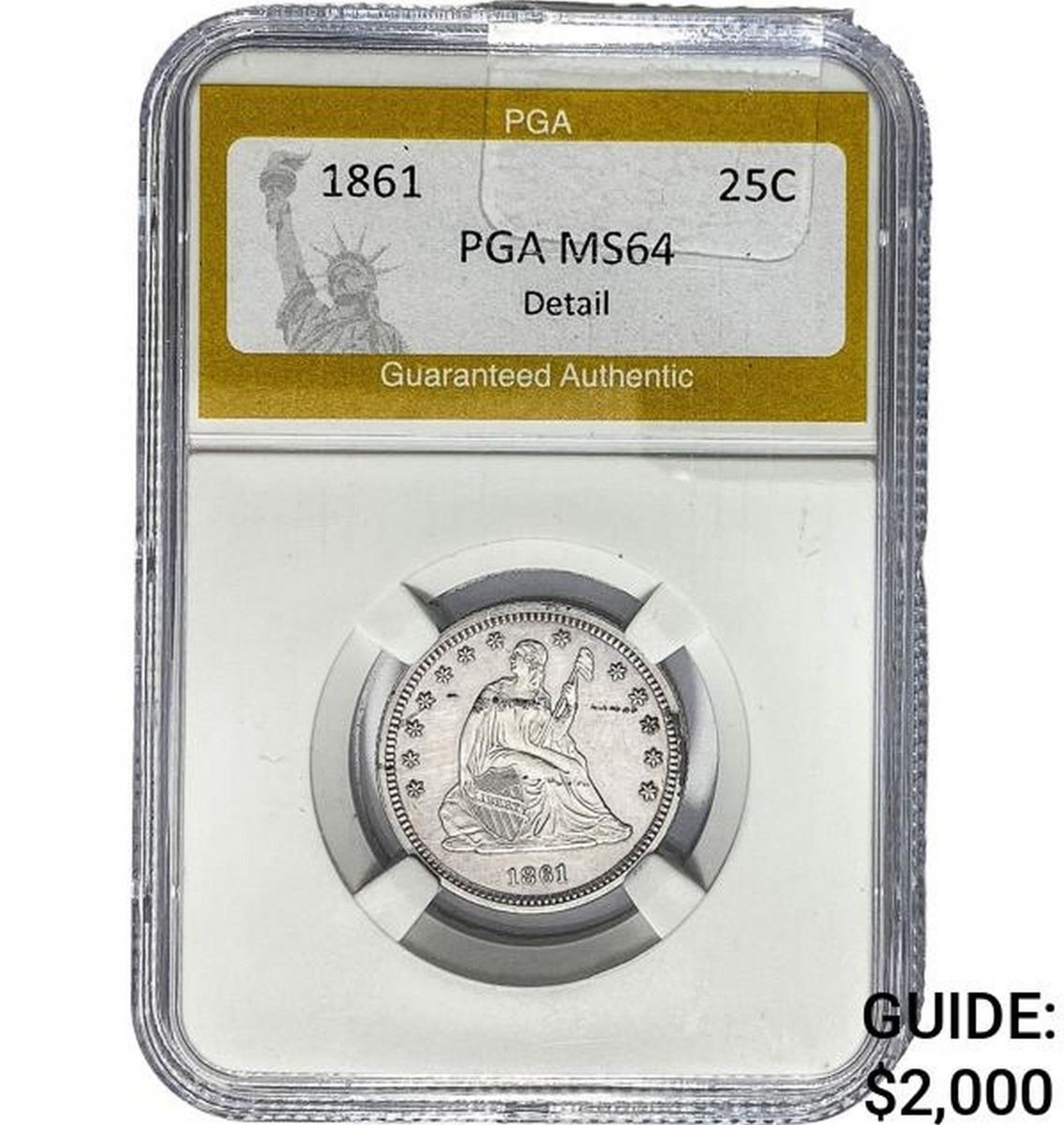 1861 Seated Liberty Quarter PGA MS64