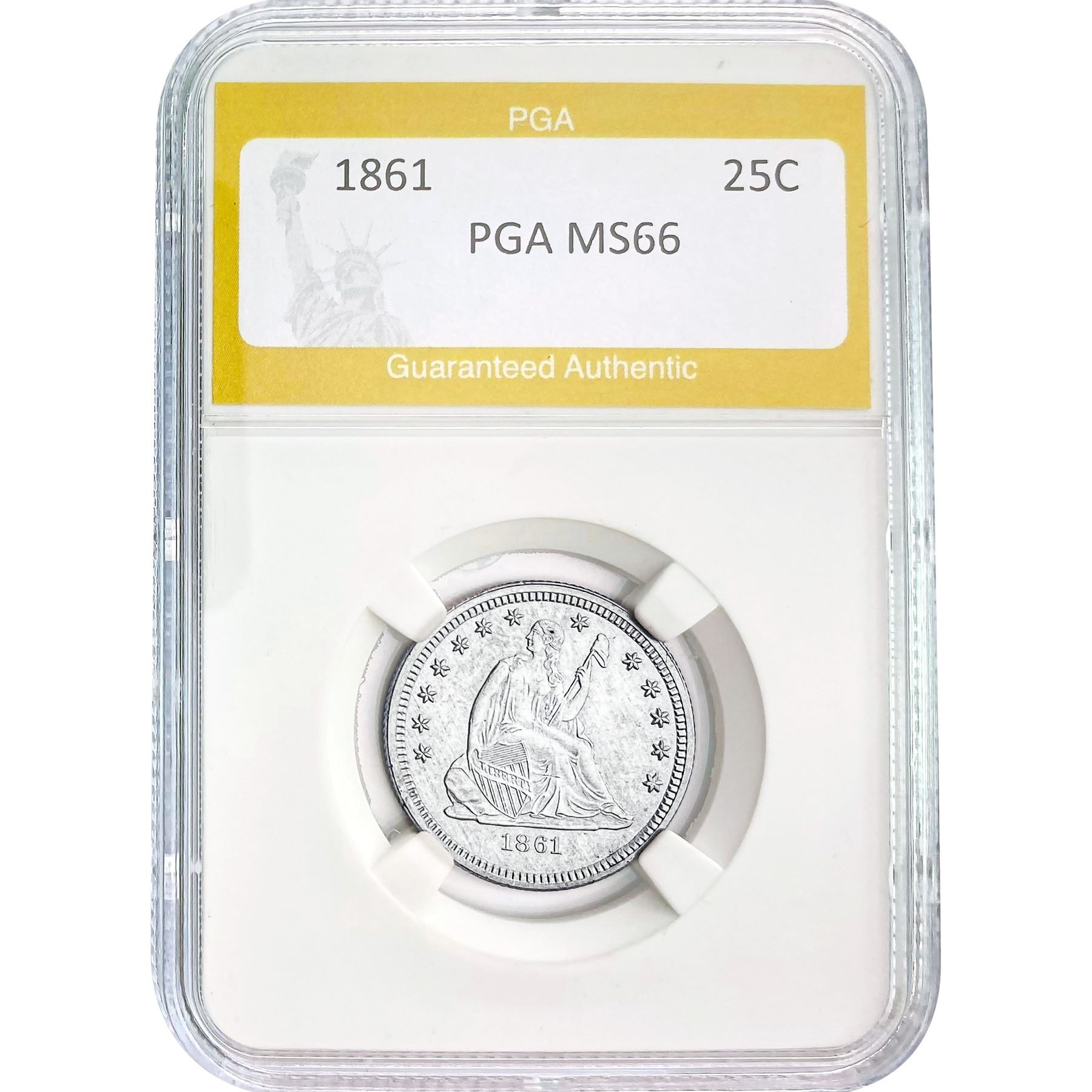 1861 Seated Liberty Quarter PGA MS66
