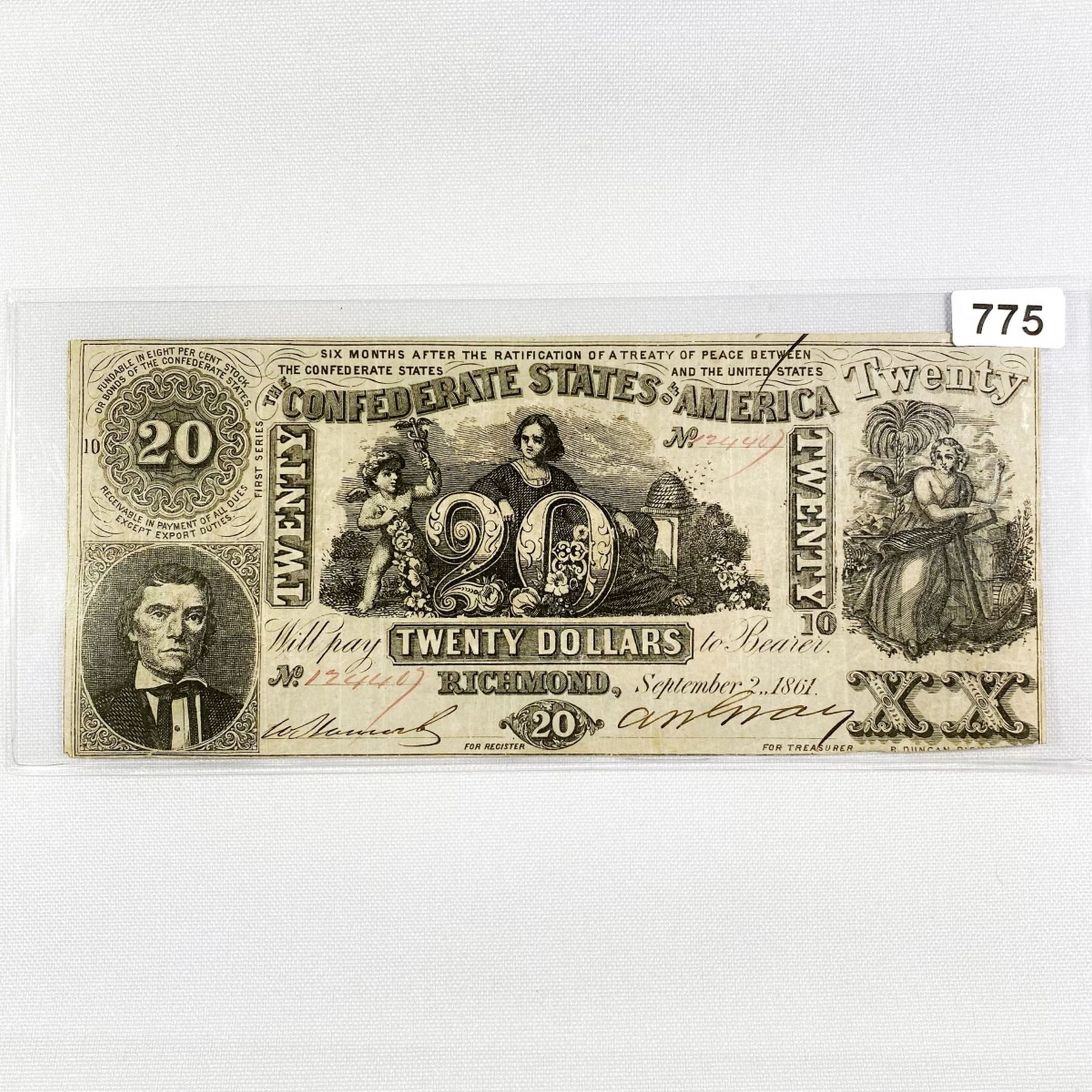 1861 Series $20 Confederate States Note