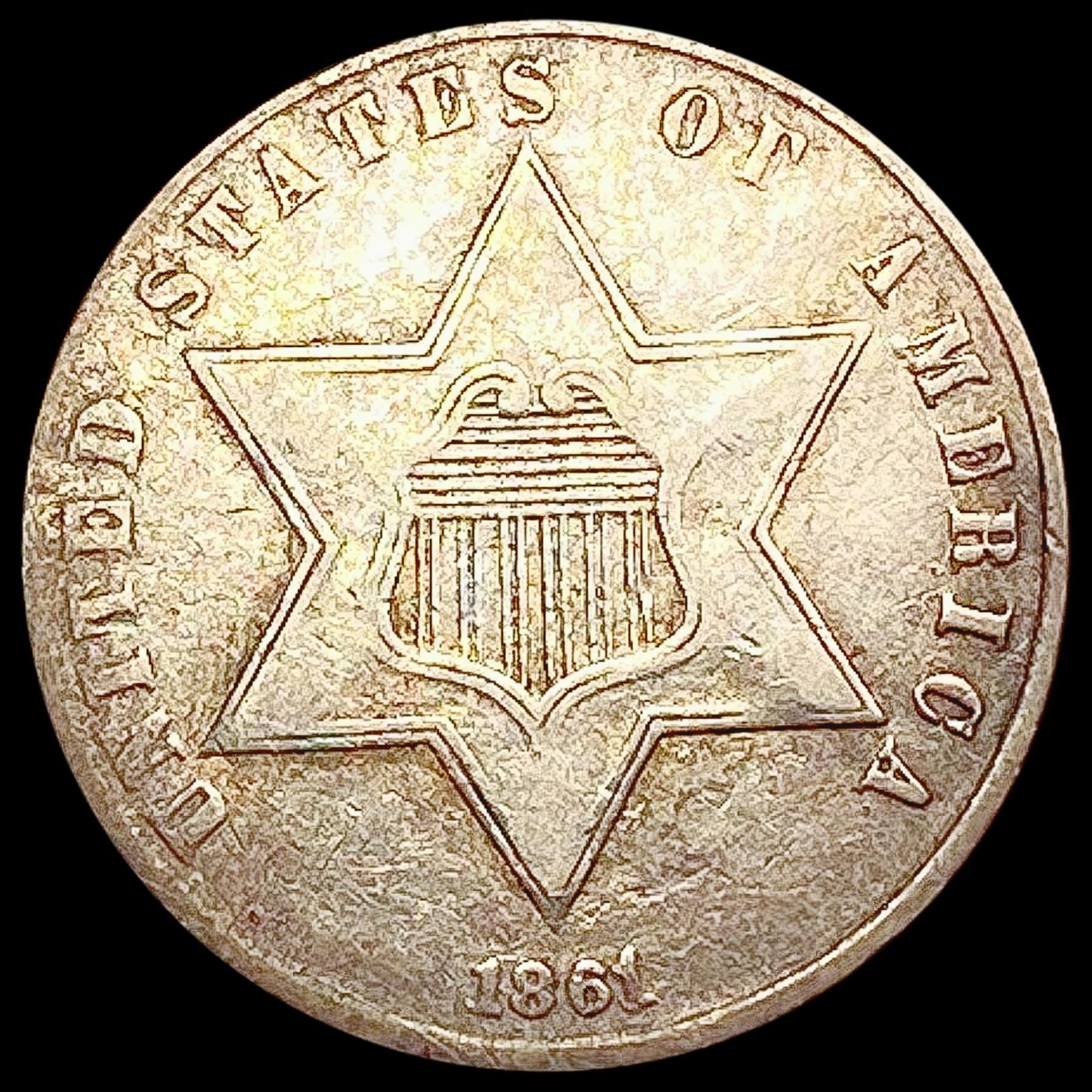 1861 Silver Three Cent ABOUT UNCIRCULATED