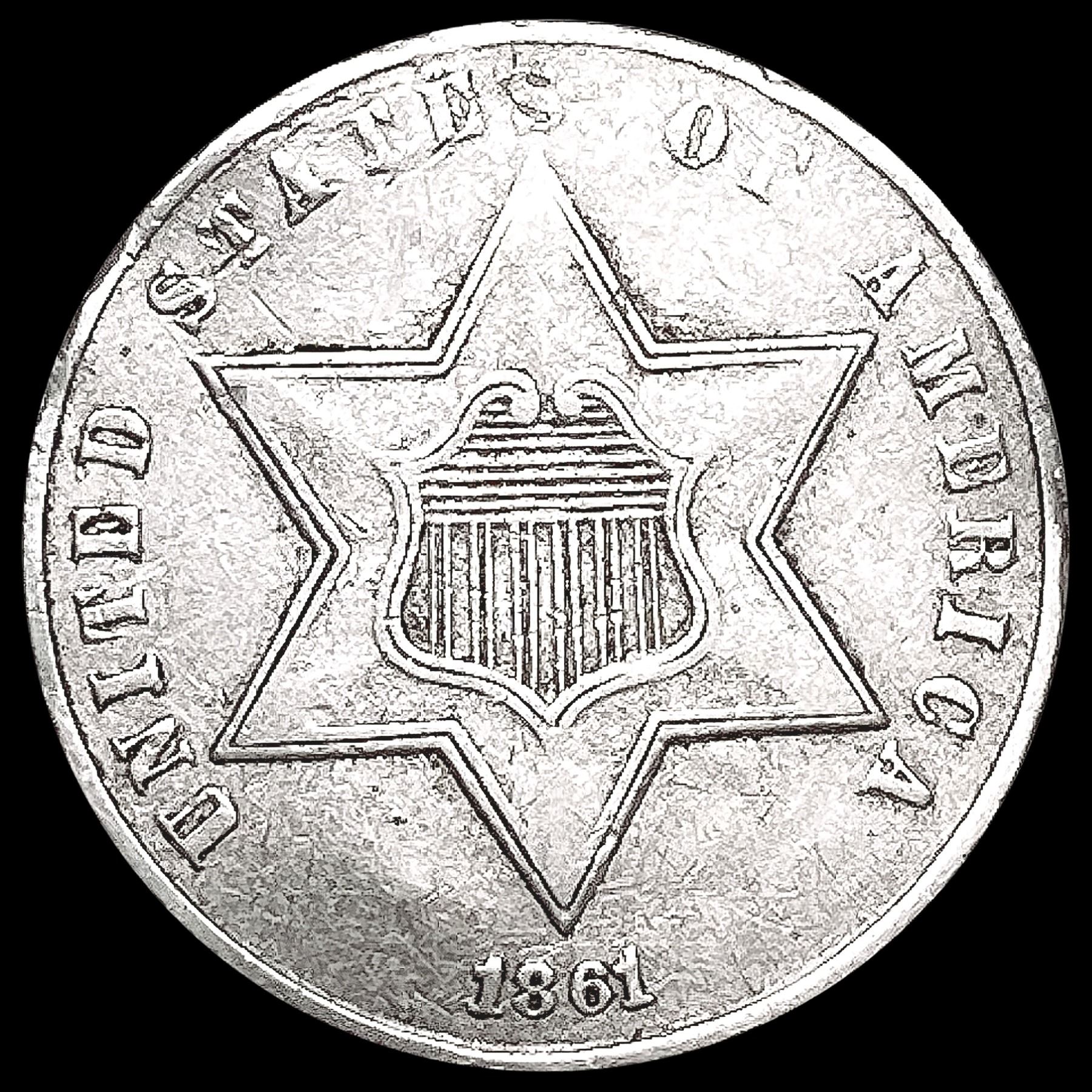 1861 Silver Three Cent NEARLY UNCIRCULATED