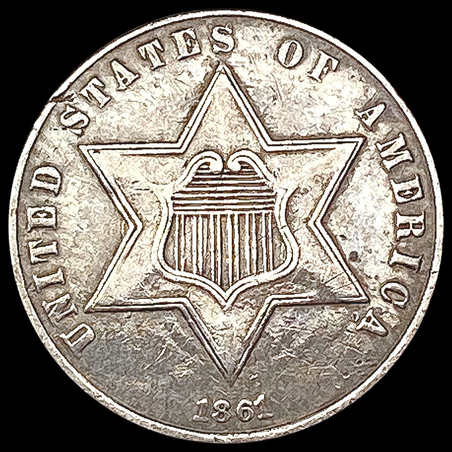 1861 Silver Three Cent NEARLY UNCIRCULATED