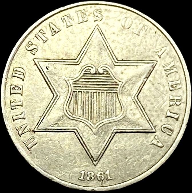 1861 Silver Three-Cent Piece CLOSELY UNCIRCULATED