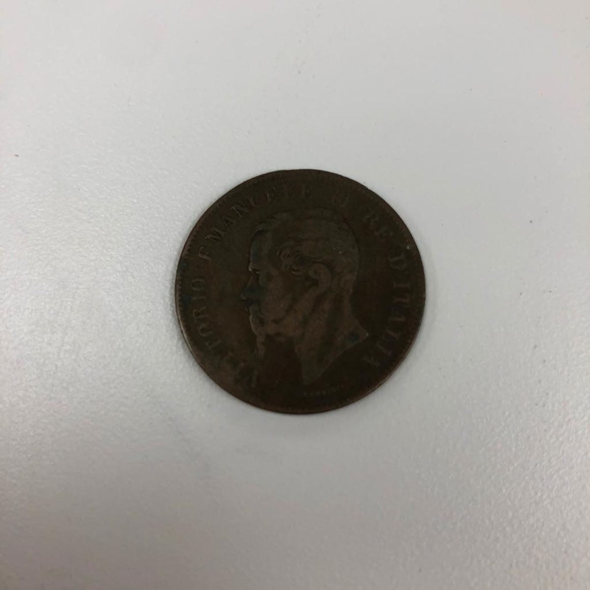 Obverse Head of King Vittorio Emanuele II left. Below the neck the name of the engraver. Lettering: VITTORIO EMANUELE II RE D'ITALIA FERRARIS Engraver: Giuseppe Ferraris Reverse Value and date within two branches, one of laurel and the other of oak. Above the Italy star and below the sign of the mint Mint marks: B for Bologna (KM# 3.1) M for Milan (KM# 3.2) N for Naples (KM# 3.3) Lettering: 5 CENTESIMI 1861 M Engraver: Giuseppe Ferraris Specifications Country: Italy Type: Standard circulation coin Years: 1861-1867 Value: 5 Centesimi (0.05 ITL) Composition: Bronze (Cu 96%, Sn 4%) Weight: 4.87 g Diameter: 25 mm Thickness: 1.08 mm Shape: Round
