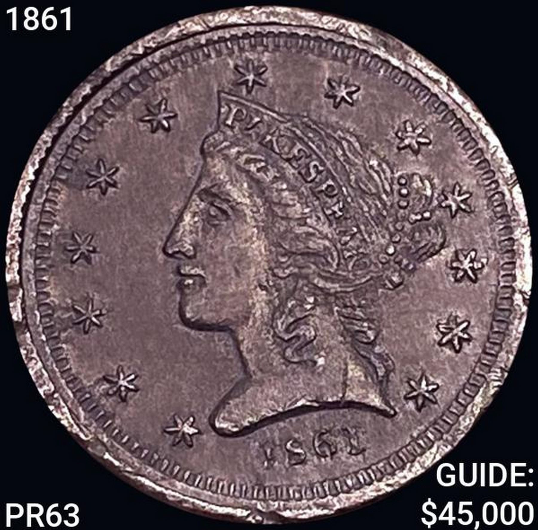 1861 White Metal $5 Clark Gruber K-10 CHOICE PROOF