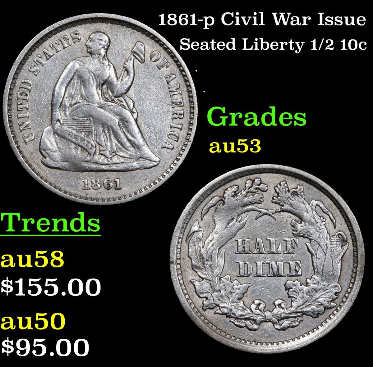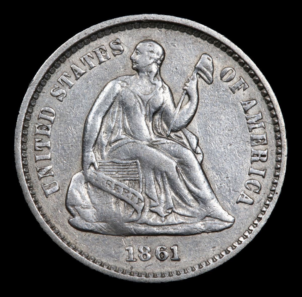 1861-p Civil War Issue Seated Liberty Half Dime 1/2 10c Grades Select AU.