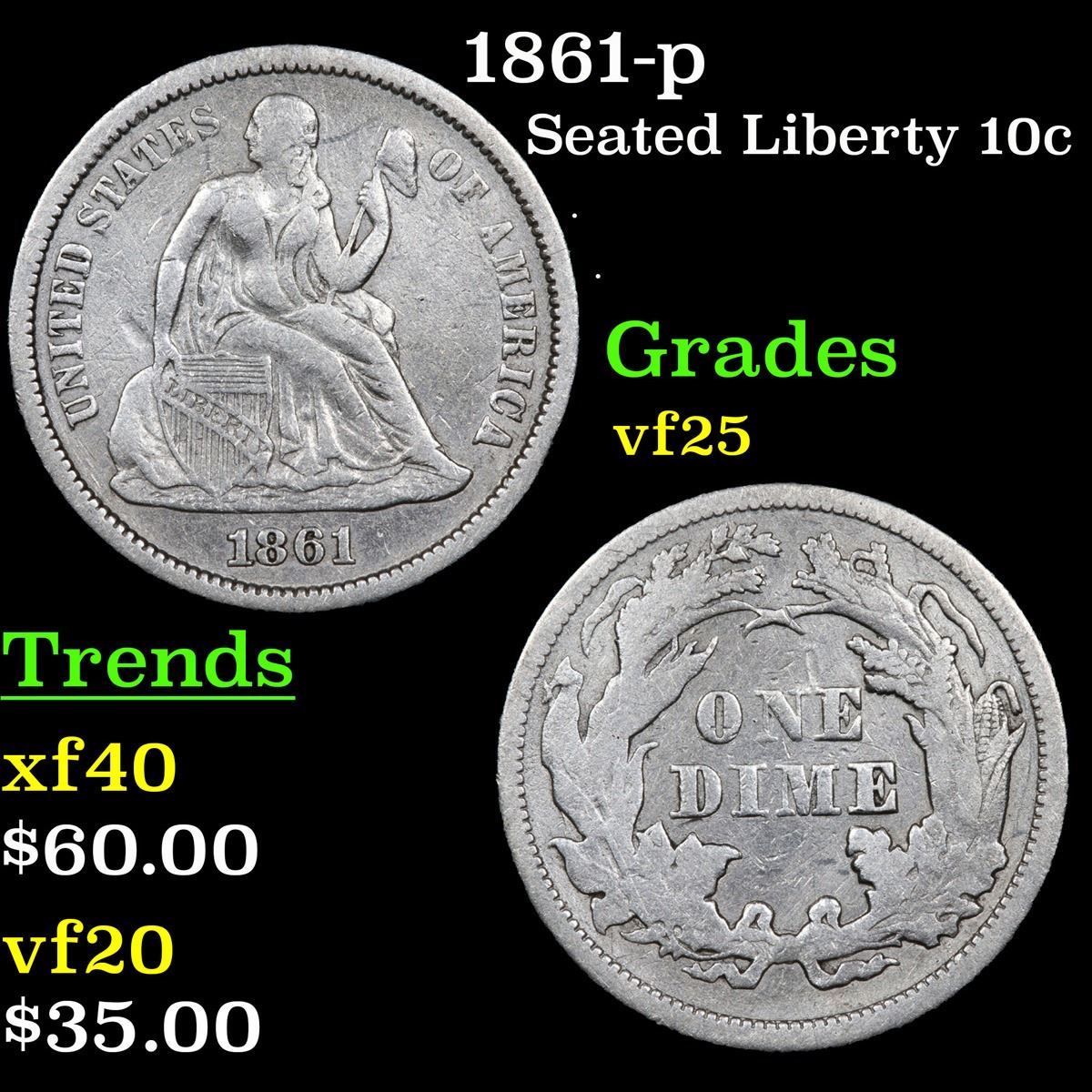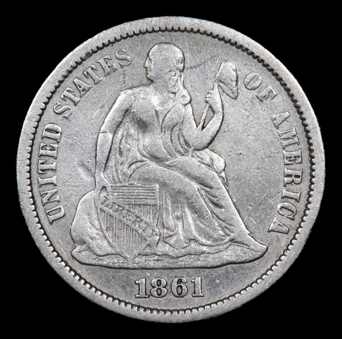 1861-p . . Seated Liberty Dime 10c Grades vf+.