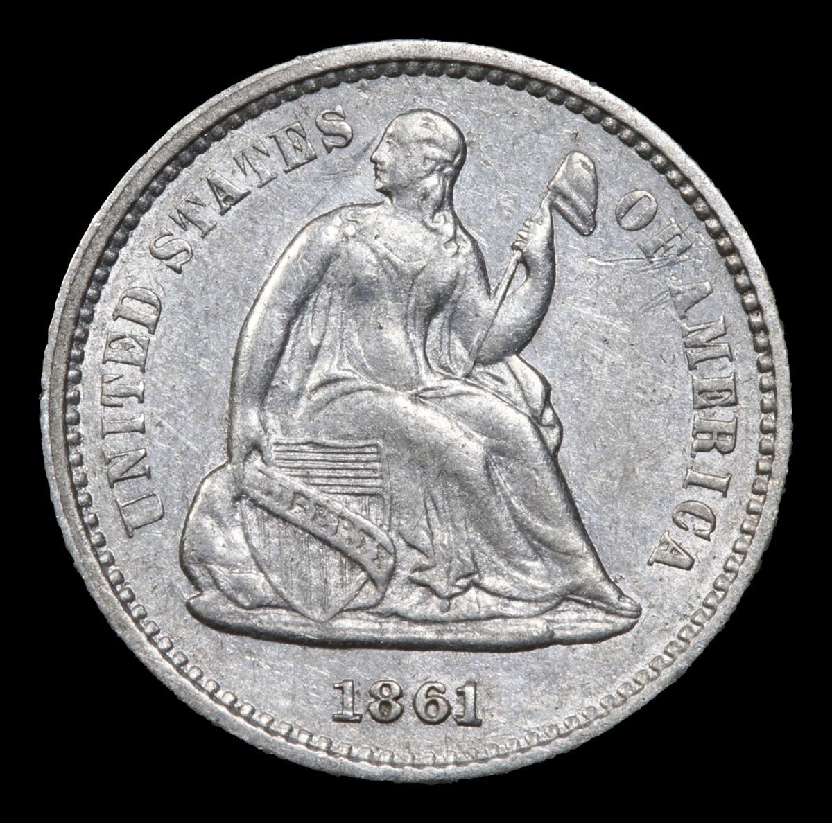 1861-p Seated Liberty Half Dime 1/2 10c Grades Select AU.