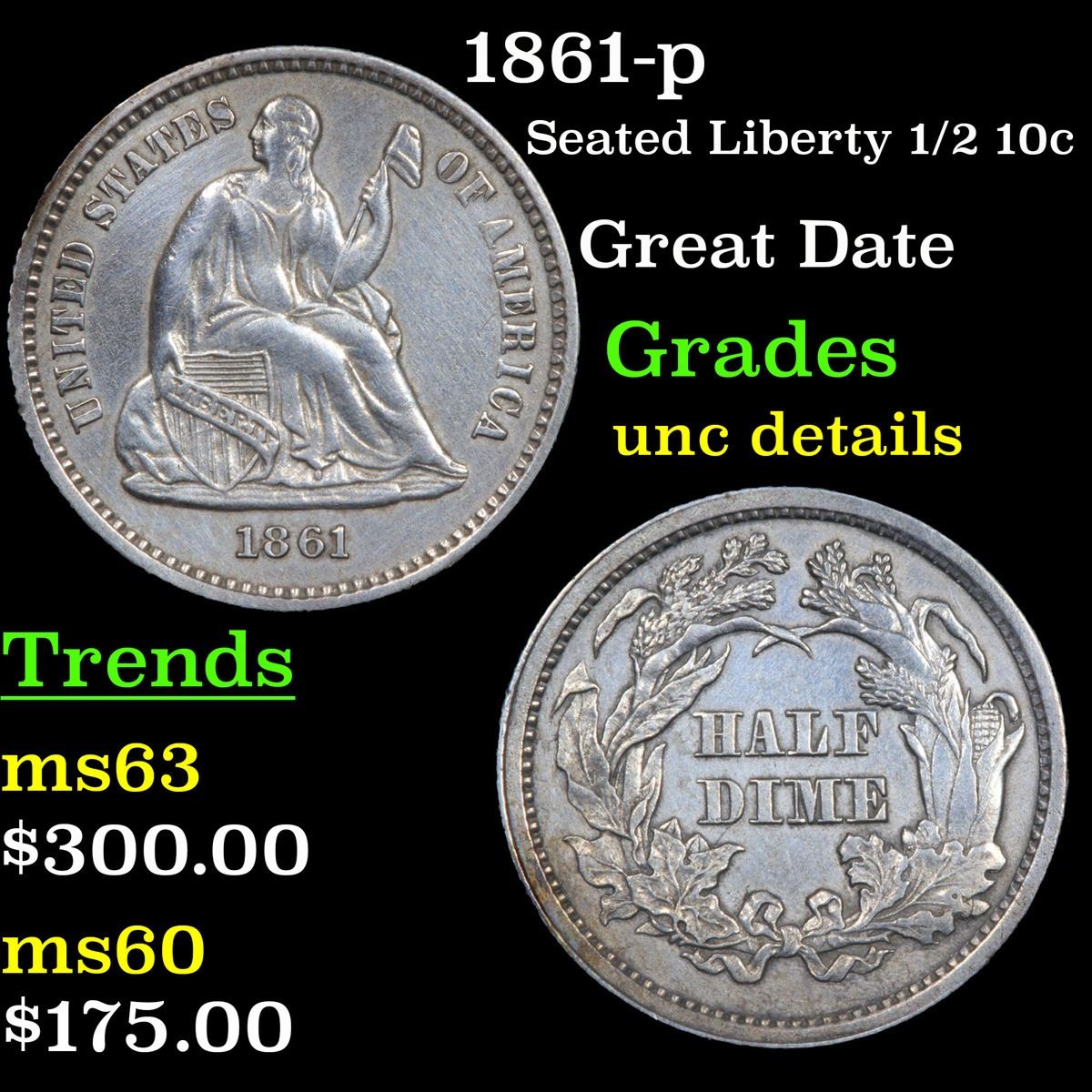1861-p Seated Liberty Half Dime 1/2 10c Grades Unc Details.