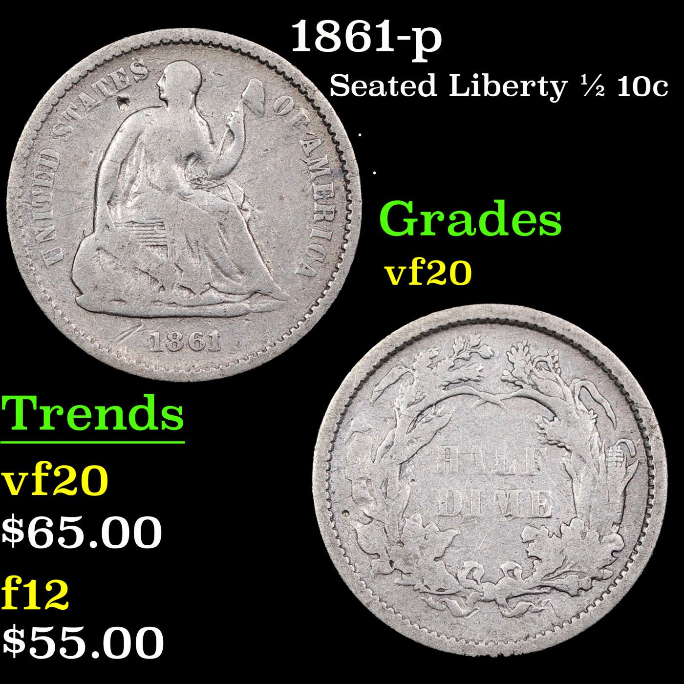 1861-p Seated Liberty Half Dime 1/2 10c Grades vf, very fine