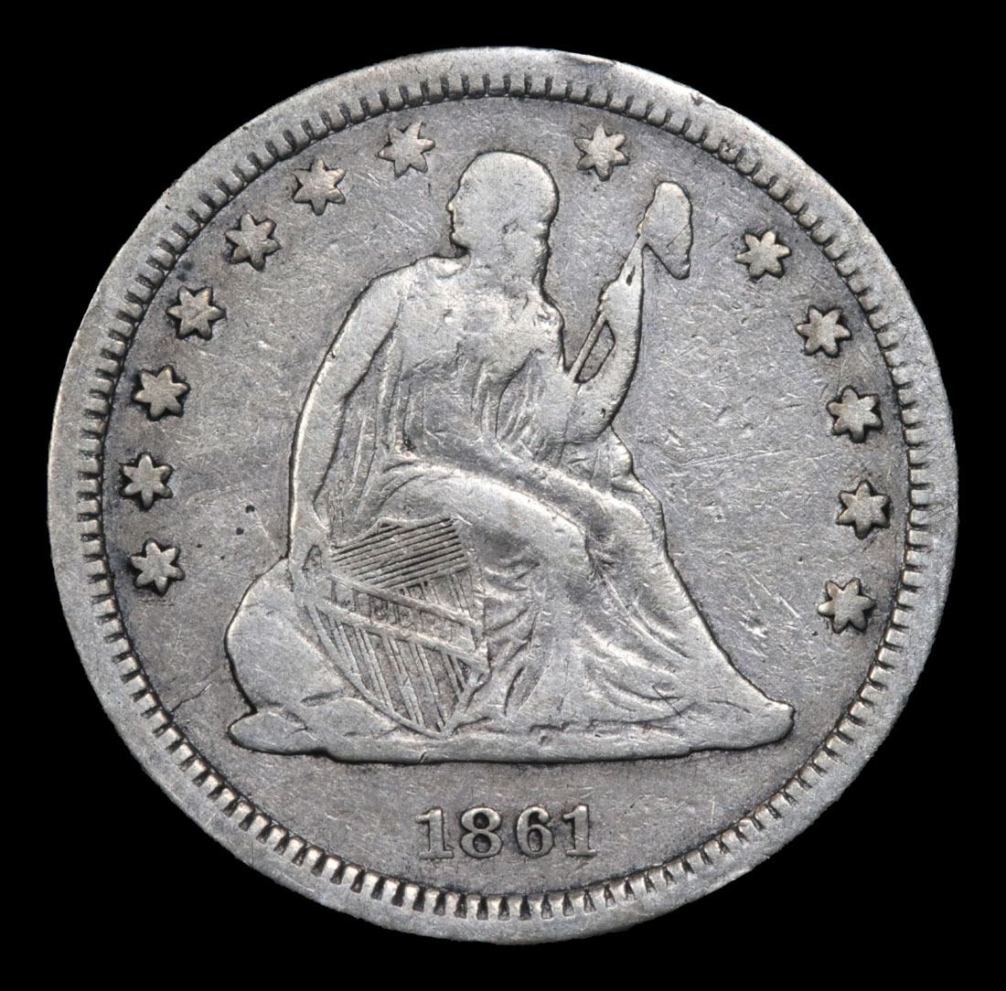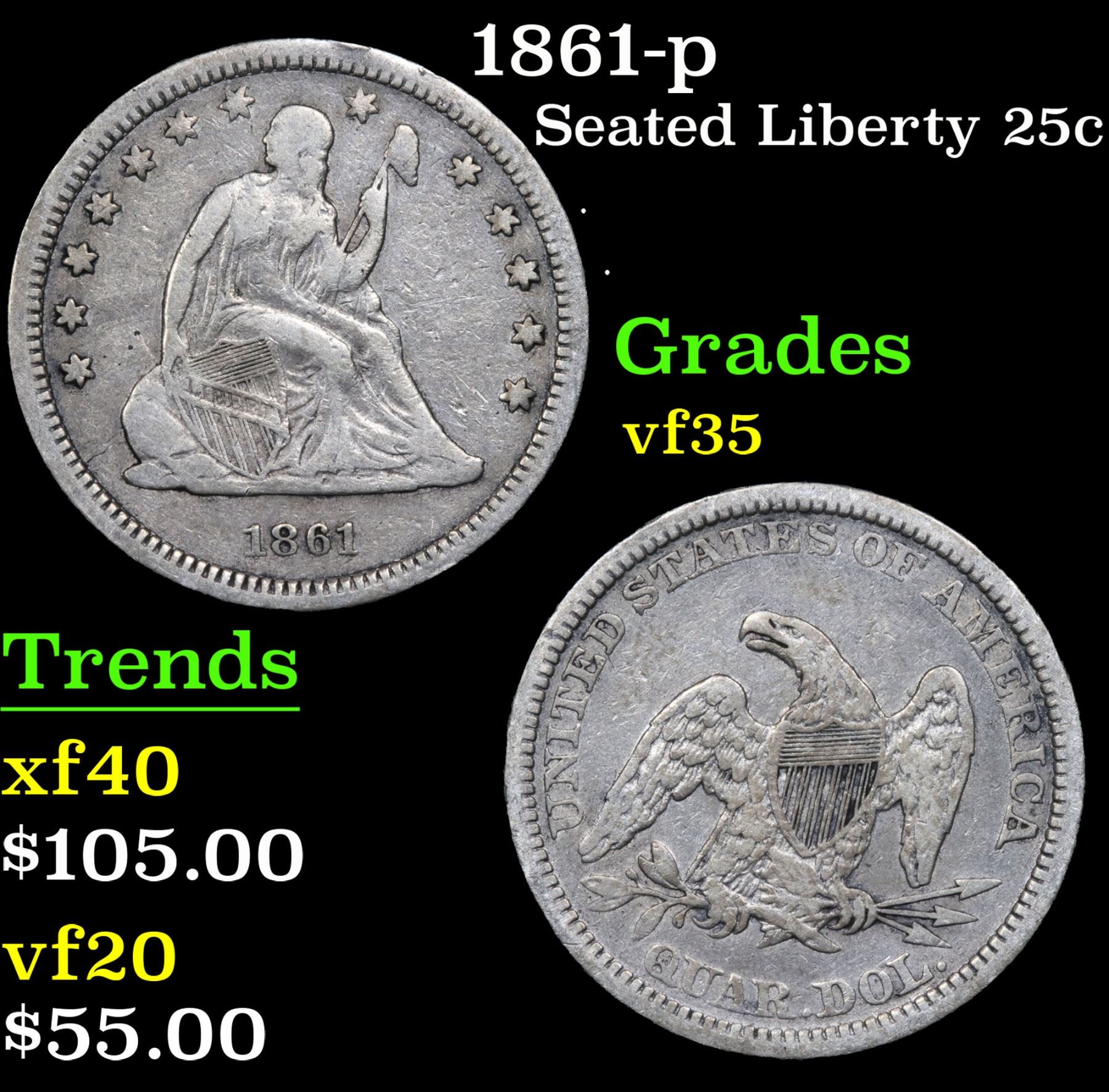 1861-p . . Seated Liberty Quarter 25c Grades vf++.