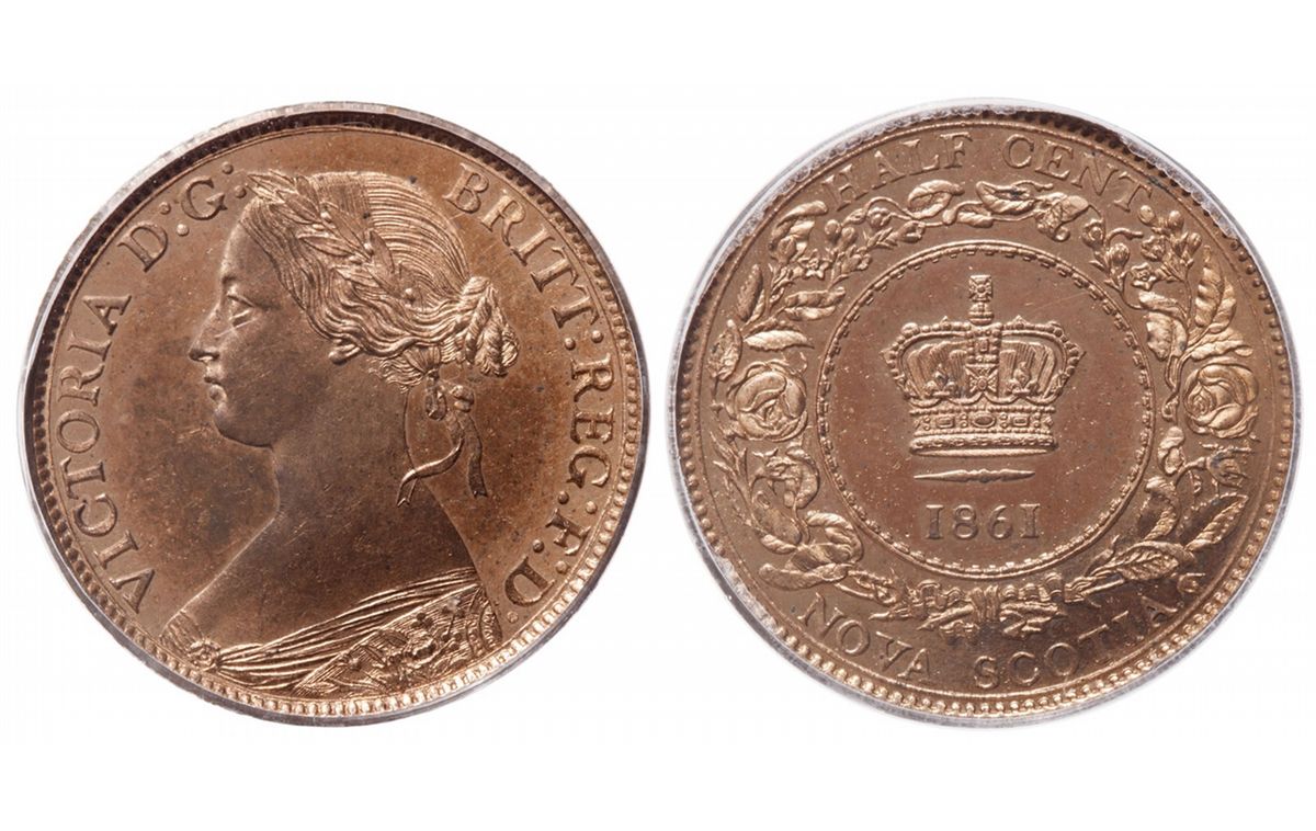 1/2 Cent. PCGS graded Specimen-65, Red-Brown. 90% Red lustre. More properly designated as Red. The solo third 'Finest' graded example by PCGS.