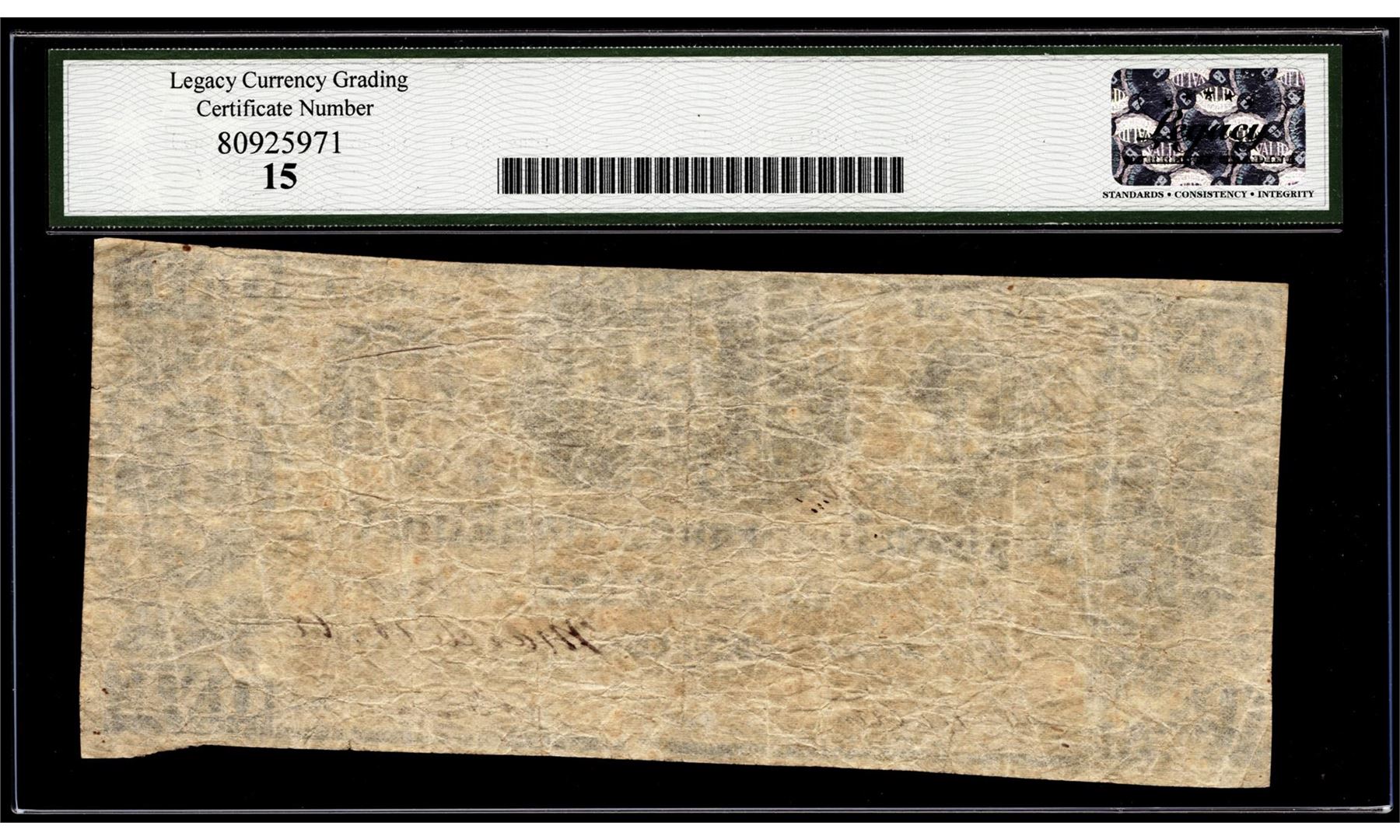 Any coins sold referencing a third-party grading service are sold AS IS without any express or implied warranty. Notes sold referencing a third-party grading service are sold AS IS without any express or implied warranty. Grading, condition or other attributes of any lot may have a material effect on its value, and the opinion of others, including third-party grading services may differ with that of BKA. BKA shall not be bound by any prior or subsequent opinion, determination, or certification by any grading service. Bidder specifically waives any claim to right of return of any item because of the opinion, determination, or certification, or lack thereof, by any grading services. Third-party graded notes are not returnable for any reason whatsoever.