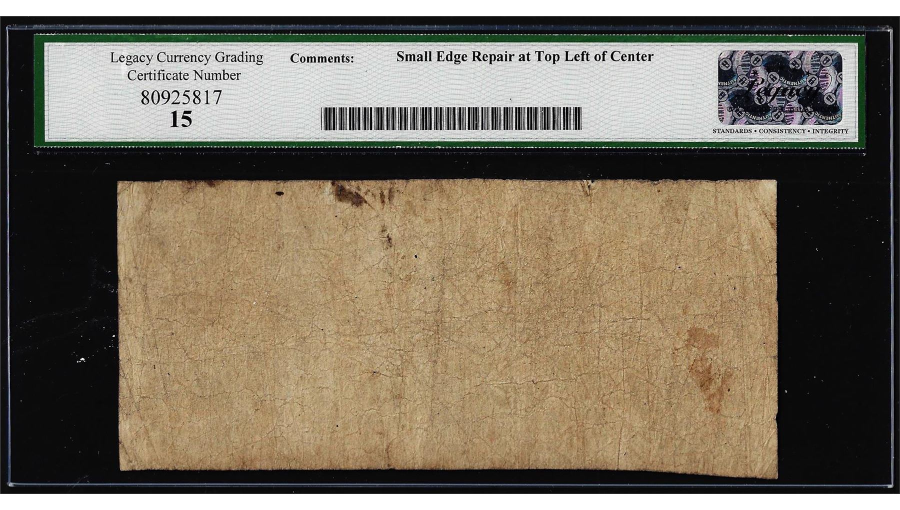 Certification does not guarantee protection against the normal risks associated with potentially volatile markets. The degree of liquidity for certified coins and collectibles will vary according to general market conditions and the particular lot involved. For some lots there may be no active market at all at certain points in time.