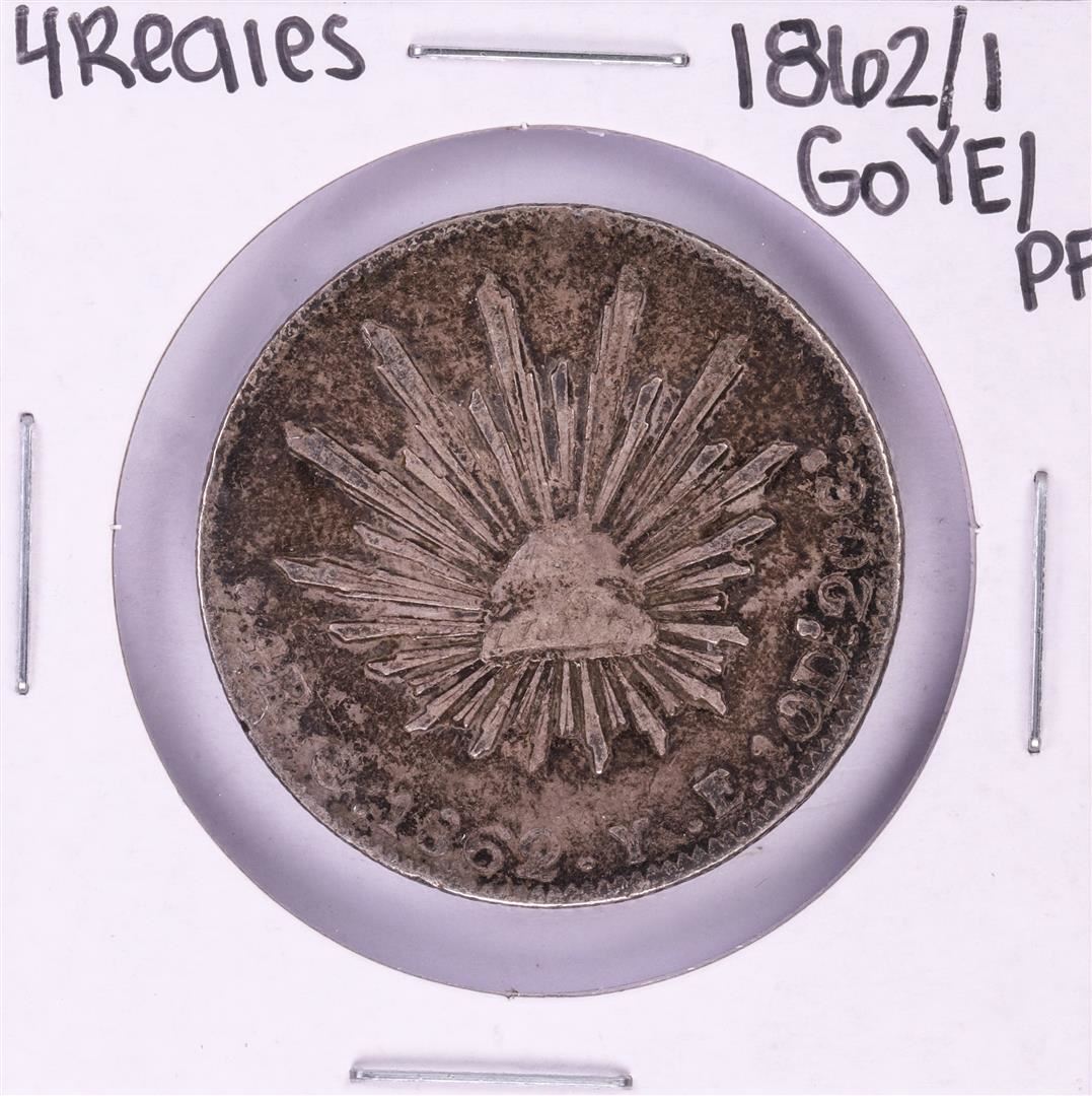 One 1862/1 GoYE/PF Mexico 4 Reales Silver Coin.