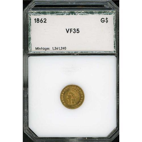 1862 $1 Gold Indian PCI VF35