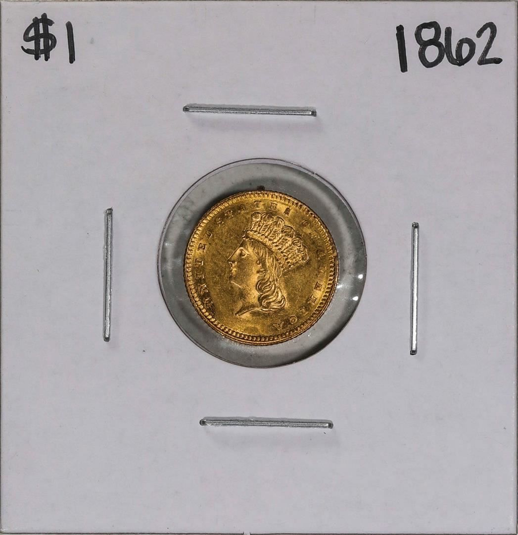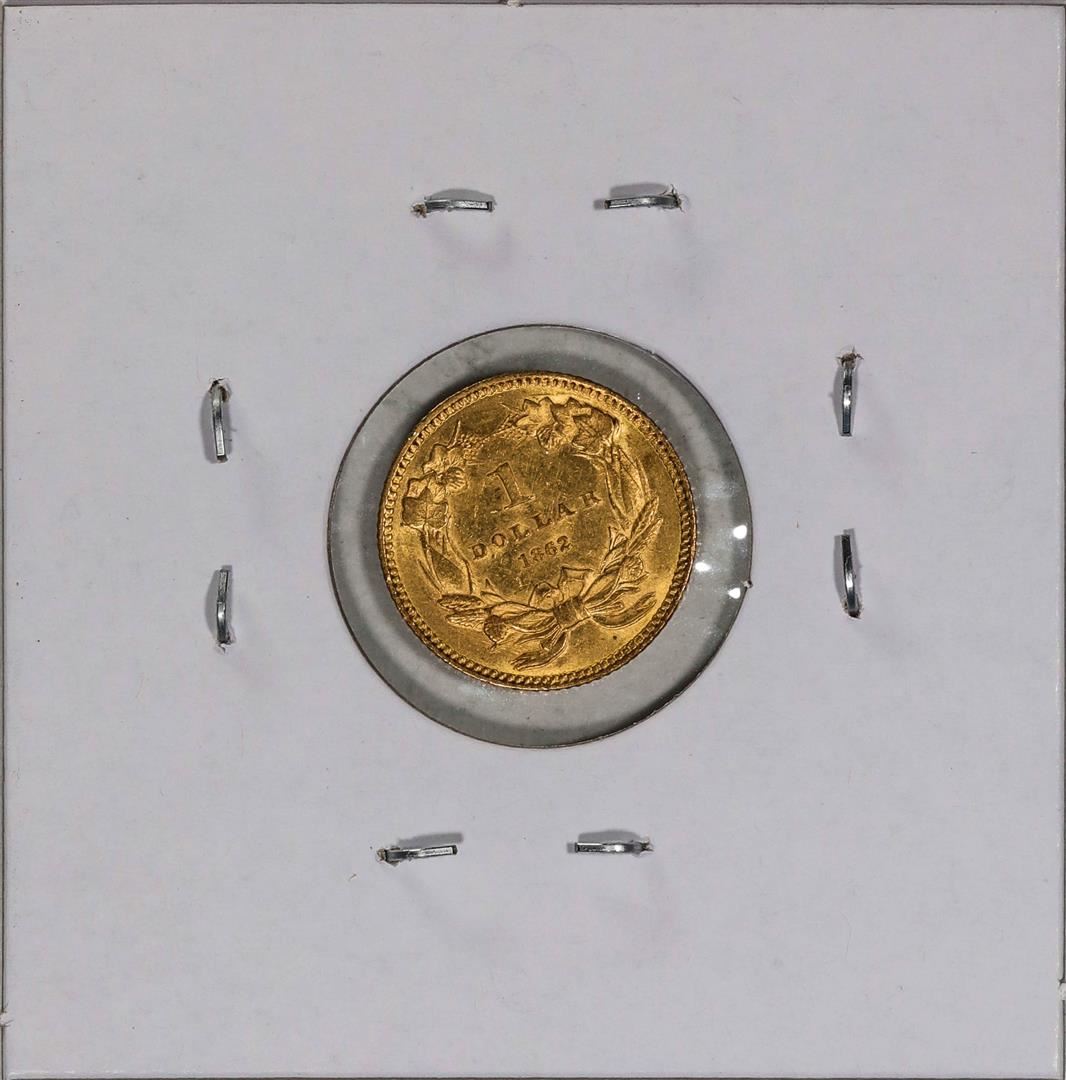 One 1862 $1 Indian Princess Head Gold Dollar Coin.