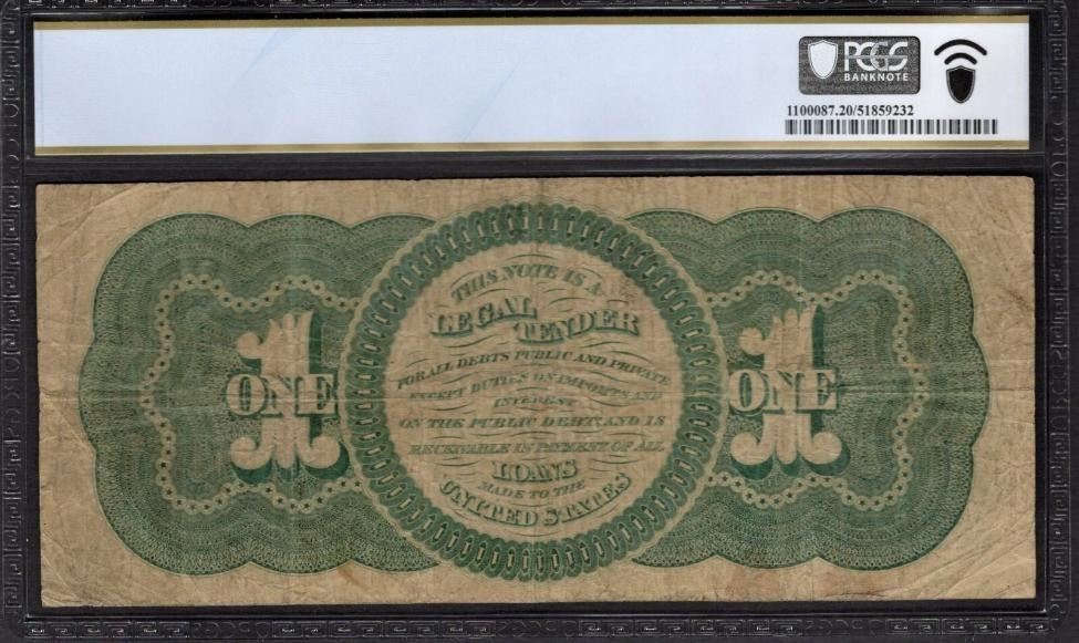 One 1862 $1 Legal Tender Note PCGS 20.