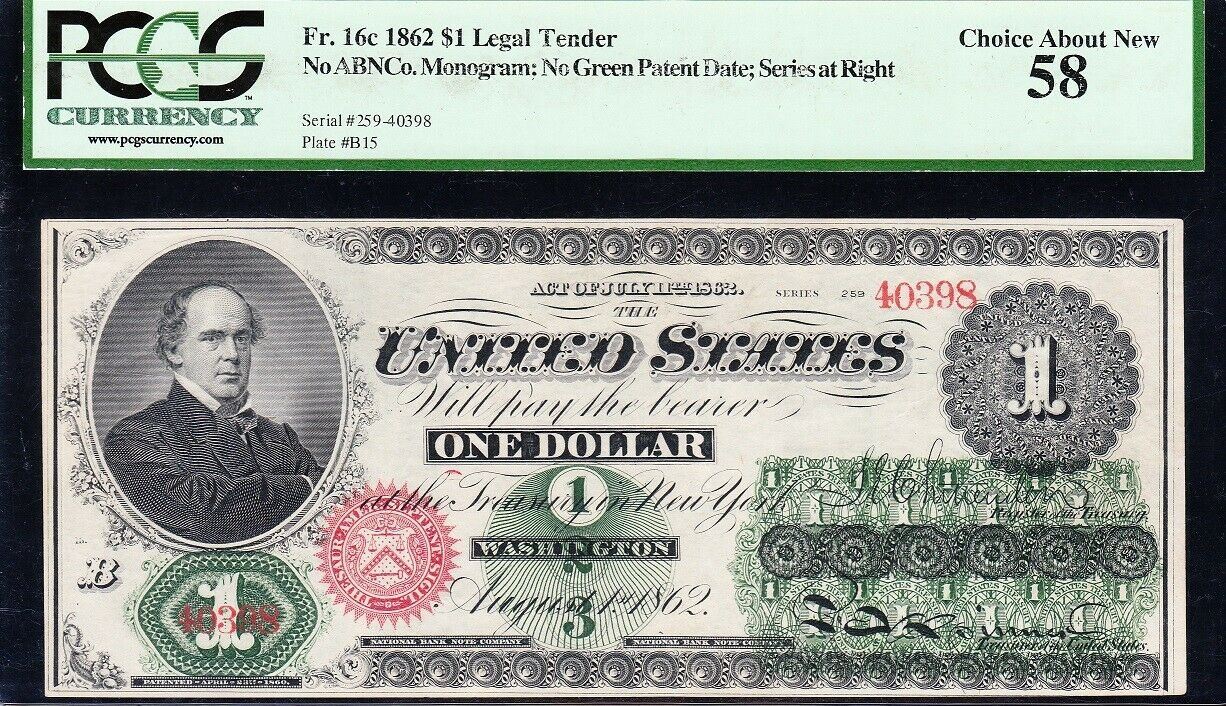 One 1862 $1 Legal Tender Note PCGS 58.