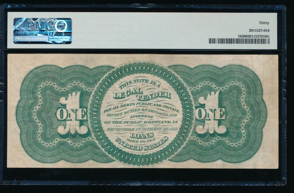 One 1862 $1 Legal Tender Note PMG 30.