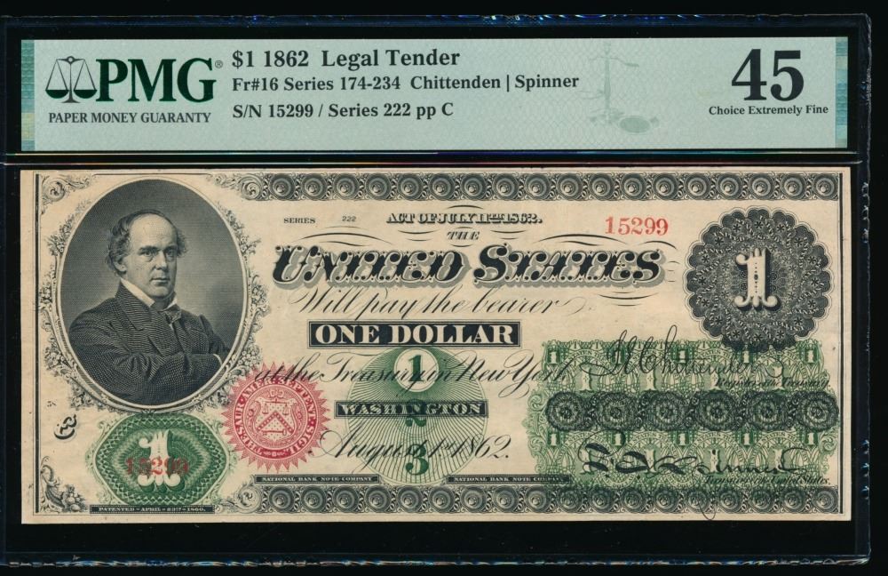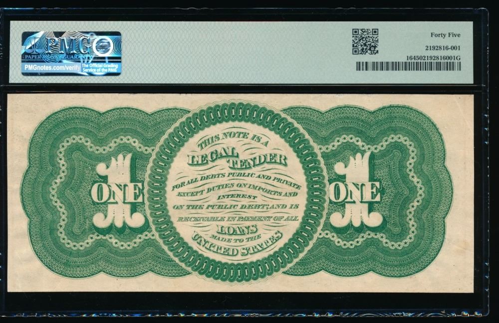 One 1862 $1 Legal Tender Note PMG 45.