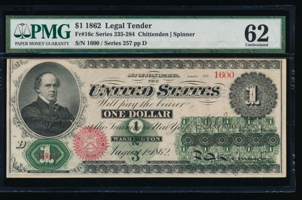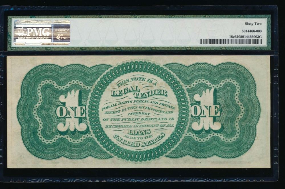 One 1862 $1 Legal Tender Note PMG 62.