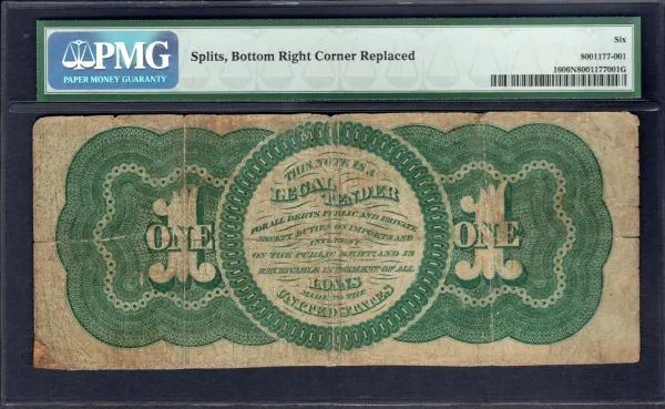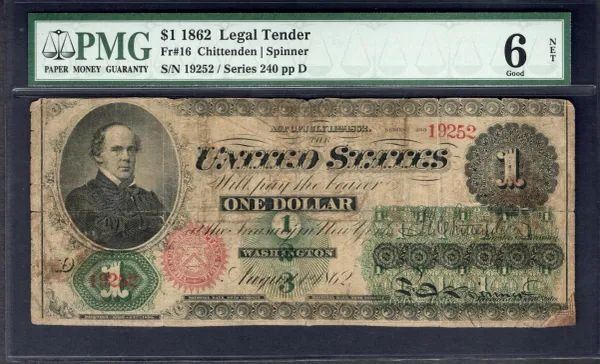One 1862 $1 Legal Tender Note PMG 6NET.