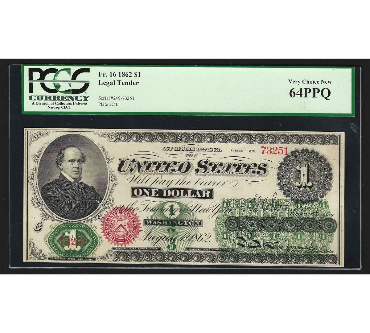 One 1862 $1 Legal Tender Note Very Choice New 64PPQ. PCGS Graded.
