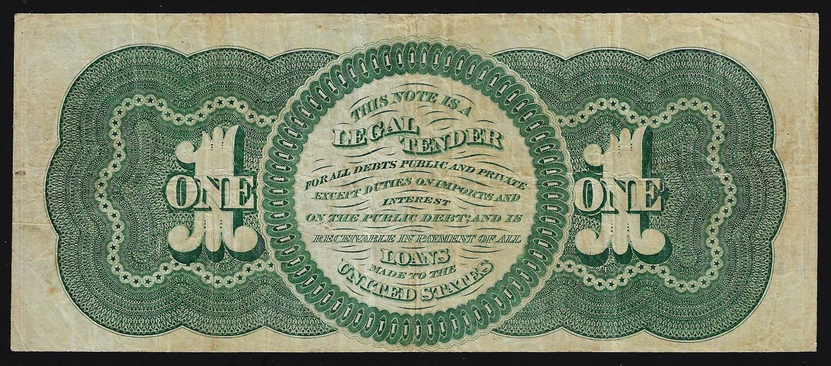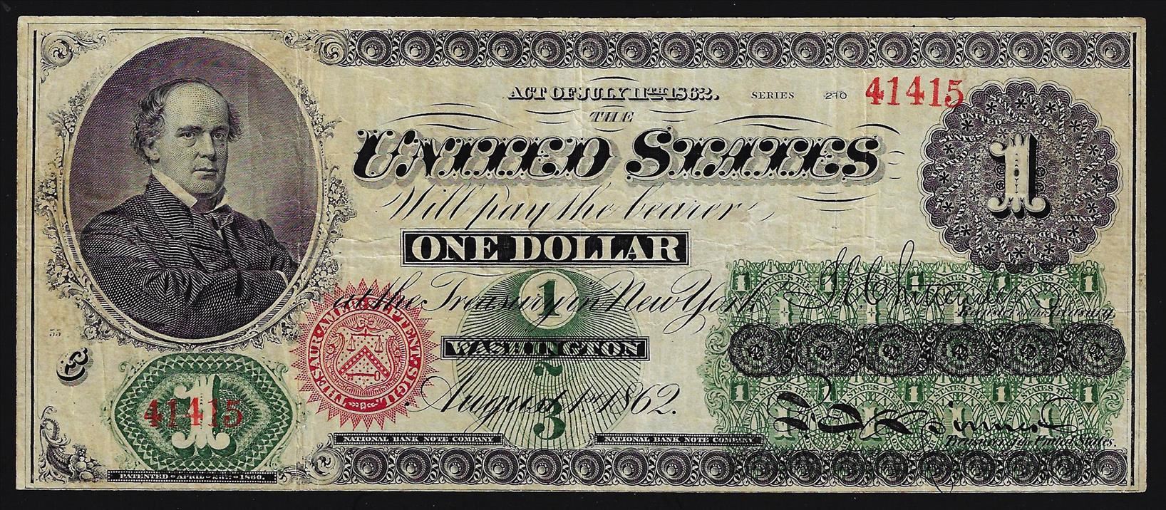 One 1862 $1 Legal Tender Note.