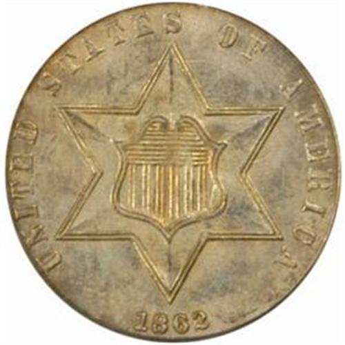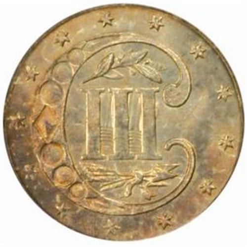 <style type="text/css"> body, td, th { font-family: Arial, Helvetica, sans-serif; font-size: 12px; color: #482424; margin: 0px; padding: 0px; } #header { background-image: url(http://www.bowersandmerena.com/ebay/images/template_v3_01.gif); clear: both; background-color: #590303; border-top-width: 2px; border-top-style: solid; border-top-color: #B38C4F;}#header #header_wrapper { height: 75px; clear: both; width: 800px; margin-right: auto; margin-left: auto; background-image: url(http://www.bowersandmerena.com/ebay/images/template_v3_03.gif); background-repeat: no-repeat; background-position: right; color: #F3EDCC;}#header #header_wrapper #header_logo { float: left; height: 75px; width: 444px; background-image: url(http://www.bowersandmerena.com/ebay/images/template_v3_02.gif); background-repeat: no-repeat; font-size: 10px; text-transform: capitalize; color: #B38C4F;}#header #header_wrapper #header_right { float: left; height: 75px; width: 356px; text-align: right;}#header #header_wrapper #header_right #headerLoginBtn { margin-bottom: 30px;}#header #header_wrapper #header_right input#txtSearch { color: #B49056; border: 1px solid #B49056; width: 175px; padding-top: 3px; padding-right: 3px; padding-bottom: 4px; padding-left: 3px;}#nav { height: 37px; background-image: url(http://www.bowersandmerena.com/ebay/images/template_v3_05.gif); clear: both;}#nav #nav_wrapper { height: 35px; width: 800px; margin-right: auto; margin-left: auto; border-left-width: 1px; border-left-style: solid; border-left-color: #B38C4F;}#nav #nav_wrapper a { padding-right: 15px; padding-left: 15px; border-right-width: 1px; border-right-style: solid; border-right-color: #B38C4F; height: 25px; padding-top: 10px; display: block; float: left; text-decoration: none; font-weight: bold; color: #5D0303;}#nav #nav_wrapper a:hover { color: #B38C4F;}#nav #nav_wrapper #search { float: right; padding-top: 7px;}#nav #nav_wrapper #search #txtSearch { font-family: Arial, Helvetica, sans-serif; font-size: 10px; text-transform: uppercase; color: #D2AE75; border: 1px solid #B38C4F; padding: 3px;}#content_bgd { background-image: url(http://www.bowersandmerena.com/ebay/images/template_v3_09.gif); background-repeat: repeat-y; background-position: center; padding-top: 15px; padding-bottom: 15px; background-color: #FBFBDB;}#content_wrapper { clear: both; height: auto; width: 800px; margin-right: auto; margin-left: auto;}.LotDetailWhite{ line-height:normal; font-size:13px; font-family: arial,helvetica,sans-serif; color: White; font-weight: bold;}.LotDetailInformation{ line-height:normal; font-size: 13px; font-family: arial,helvetica,sans-serif;}.LotDetailMessage{ line-height:normal; font-size: 13px; font-family: arial,helvetica,sans-serif; color: red;}}tr.HeaderAuctionTitle td { color: #000000; font-weight: bold; padding: 2px; background-image: url(http://www.bowersandmerena.com/ebay/images/template_v3_05.gif); background-repeat: repeat-x; border-bottom-width: 1px; border-bottom-style: solid; border-bottom-color: #B38C4F;}table.AuctionSummary a, table.AuctionSummary a:link, table.AuctionSummary a:visited { color: #0000FF; text-decoration: none;}}td.tableHeaderLeft { border-left-width: 1px; border-left-style: solid; border-left-color: #B38C4F;}td.tableHeaderRight { border-right-width: 1px; border-right-style: solid; border-right-color: #B38C4F;}td.tableCellMiddle { border-left-width: 1px; border-left-style: solid; border-left-color: #B38C4F; border-right-width: 1px; border-right-style: solid; border-right-color: #B38C4F; padding: 5px;}tr.footer td { border-top-width: 1px; border-top-style: solid; border-top-color: #B38C4F;}</style></head><body><div id="header"> <div id="header_wrapper"> <div id="header_logo"> </div> <div id="header_right"> </div> </div></div><div id="nav"> <div id="nav_wrapper"> <a href="http://www.bowersandmerena.com">Our eBayLive Auctions</a> <a href="#PaymentInfo">Payment Information</a> <a href="#ShippingInfo">Shipping Information</a> <a href="#About">About Bowers and Merena</a> </div></div><div id="content_bgd"> <div id="content_wrapper"> <table width="100%" border="0" cellpadding="5" cellspacing="0" class="AuctionSummary"> <tbody> <tr class="HeaderAuctionTitle" style="height: 25px;"> <td align="left" class="tableHeaderLeft" > </td> <td align="center" class="tableHeaderRight"> <span style="font-size: large;">Lot #344. 1862/1 Silver Three-Cent Piece. FS-007. MS-65 (PCGS).</span> </td> </tr> <tr> <td colspan="3" class="tableCellMiddle"> This satiny Gem is dusted in pretty silver-apricot iridescence that yields to more vivid pink and blue colors along the lower-reverse border. Struck from clashed dies--a feature that is seen quite often on Three-Cent Silvers of many dates--but the surfaces are otherwise smooth with no detracting abrasions to report.