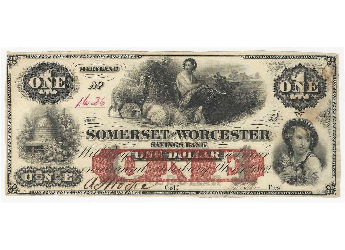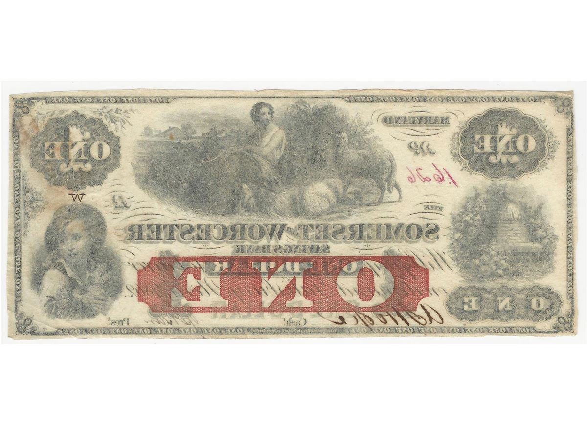 One 1862 $1 Somerset and Worcester Savings Bank Obsolete Note.