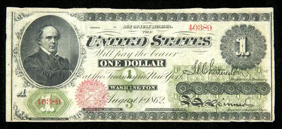 1862, $1 United States Note. . Fr-17a. A decent note for the grade. Very Good.