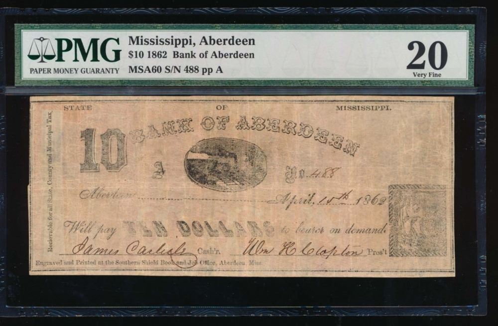 One 1862 $10 Aberdeen Obsolete Note PMG 20.