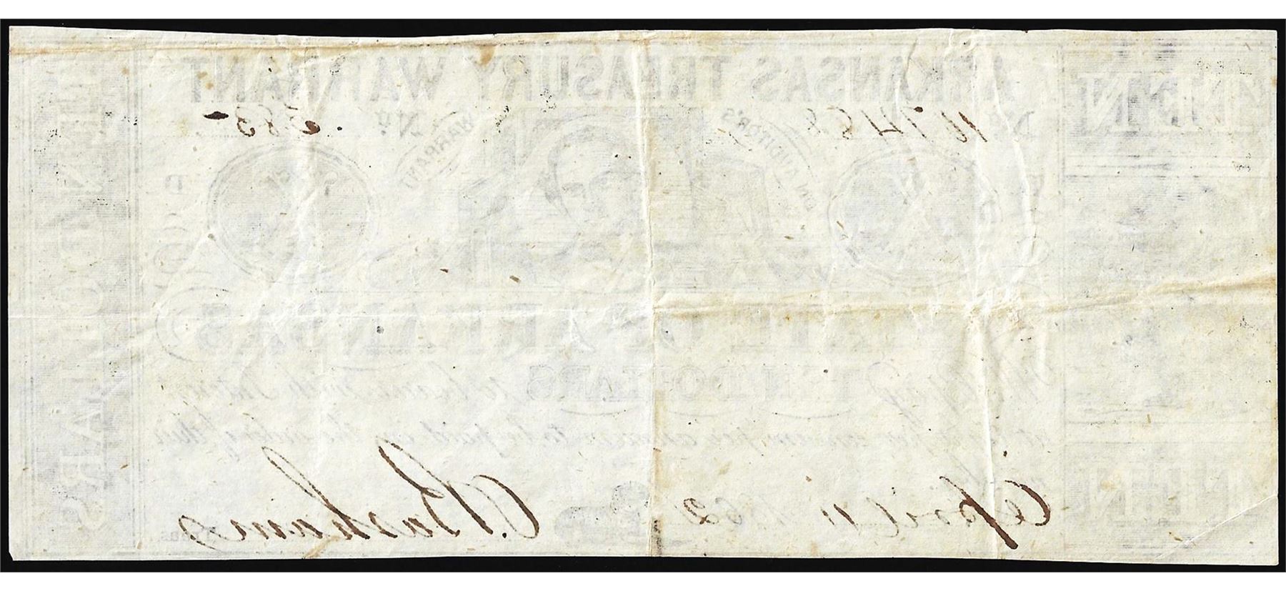 1862 $10 Arkansas Treasury Warrant Little Rock, AR Obsolete Note