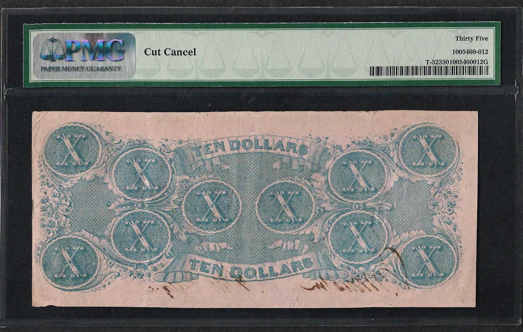 1862 $10 Confederate States of America Note T-52 PMG Choice Very Fine 35