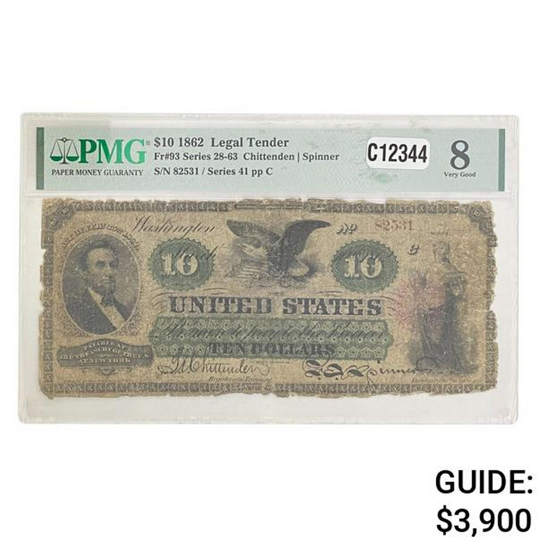 1862 $10 LEGAL TENDER USN PMG VERY GOOD-8