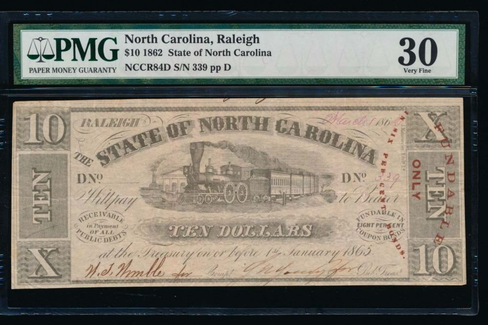 One 1862 $10 North Carolina Obsolete Note PMG 30.