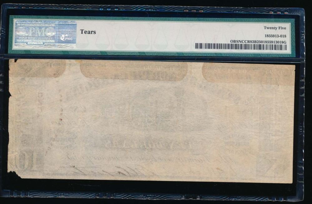 One 1862 $10 Raleigh NC Obsolete Note PMG 25.