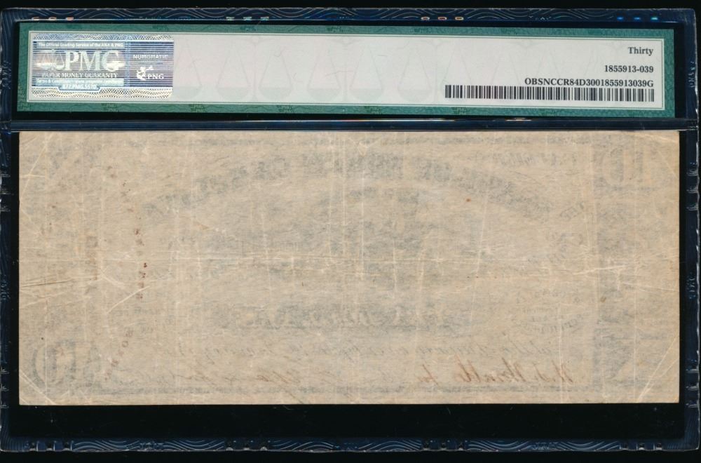 One 1862 $10 Raleigh NC Obsolete Note PMG 30.