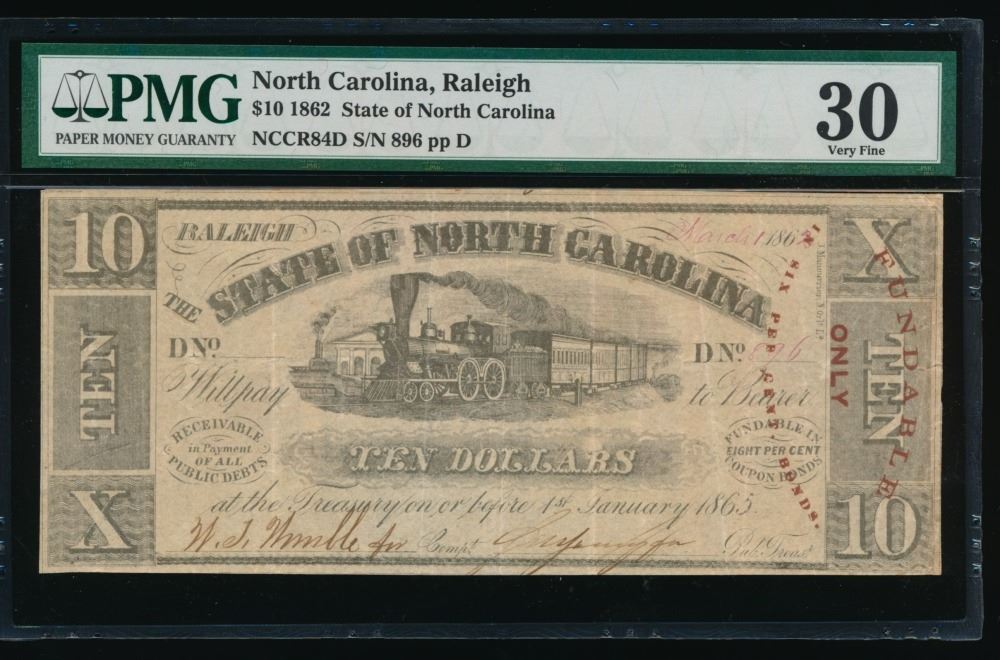 One 1862 $10 Raleigh NC Obsolete PMG 30.