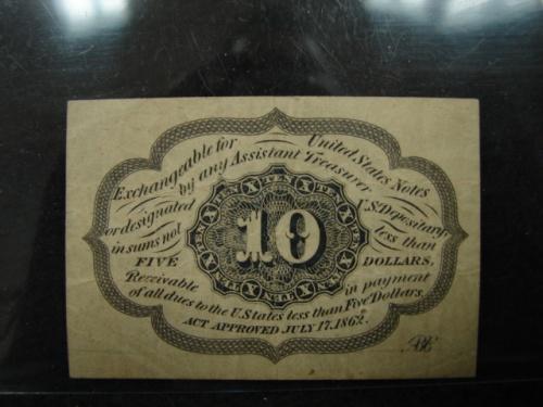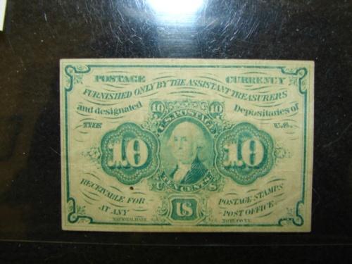 1862 10¢ U.S. POSTAGE CURRENCY NOTE.