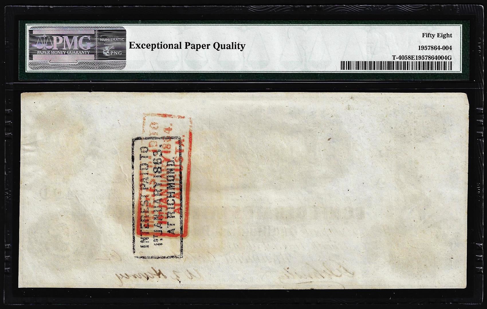 1862 $100 Confederate States of America Note T-40 PMG About Uncirculated 58EPQ