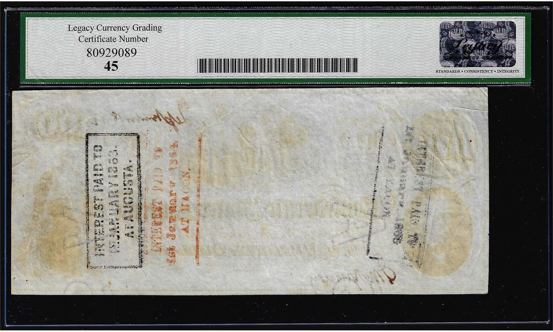 One 1862 $100 Confederate States of America Note T-41 Legacy Extremely Fine 45. Legacy Graded.